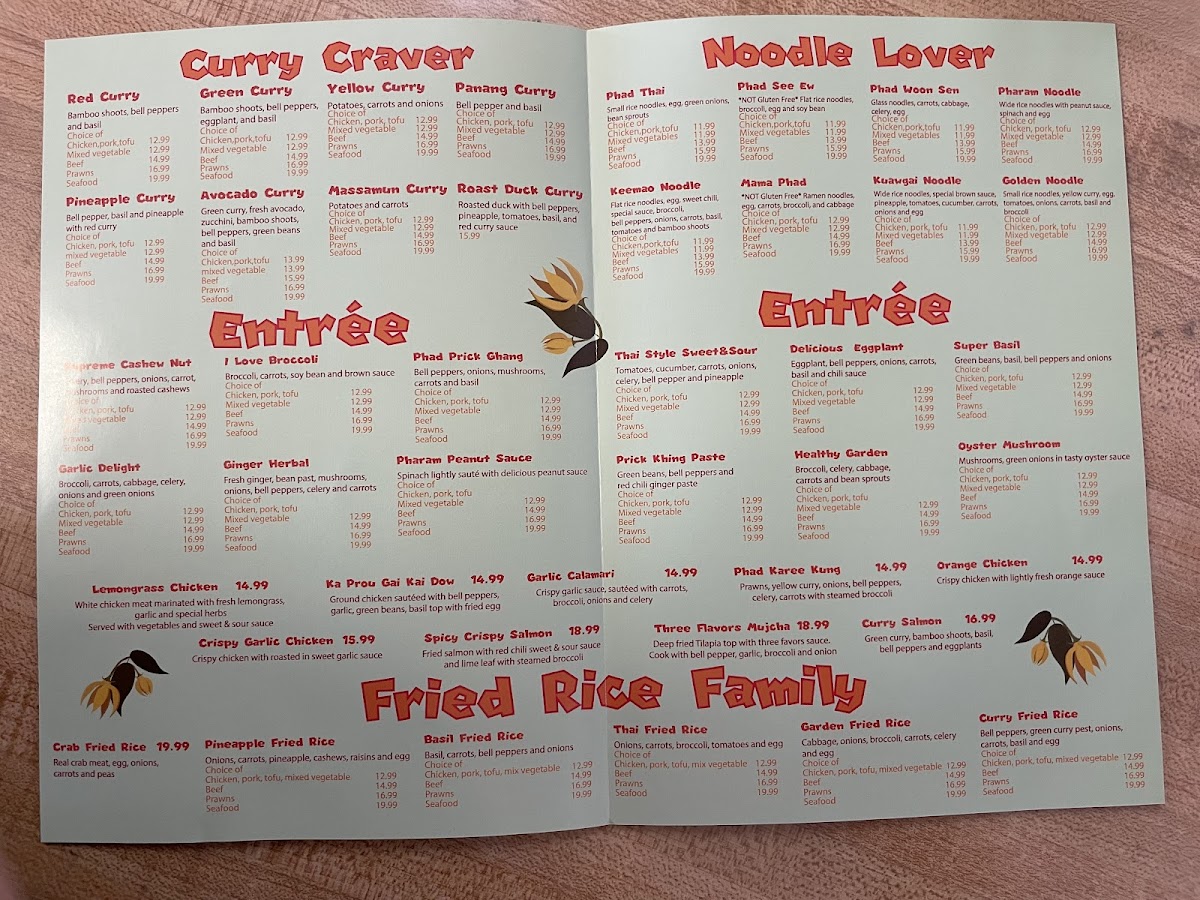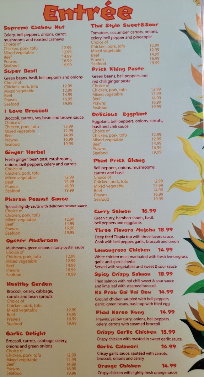 Bell pepper, basil and pineapple with red curry ( W/Beef 17.99, W/Prawn 19.99, W/Seafood 23.99 )